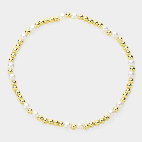 [US] FASHNZFAB pearl stainless steel ball beaded stretch bracelet