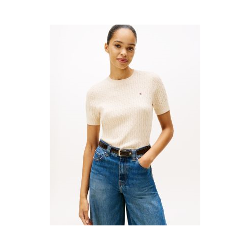 Tommy Hilfiger women's sweater. Made from premium cotton in a flattering, easy fit, our lightweight, short-sleeve cable knit sweater is a soft, comfortable layer.