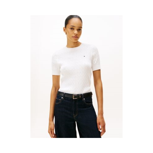 Tommy Hilfiger women's sweater. Made from premium cotton in a flattering, easy fit, our lightweight, short-sleeve cable knit sweater is a soft, comfortable layer.