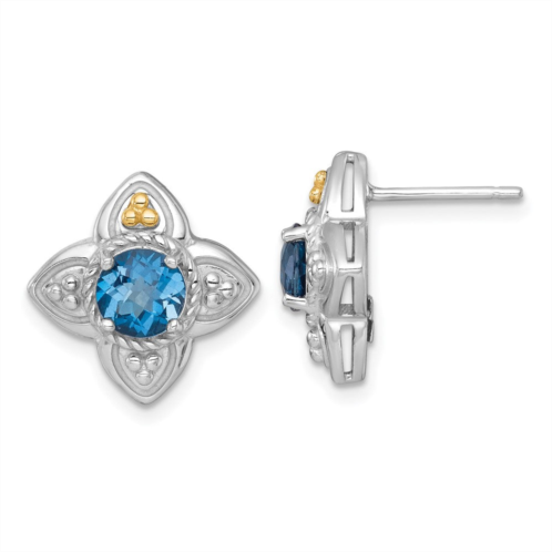 [US] Diamond2Deal sterling silver rhodium-plated with 14k accent round london blue topaz flower stud earrings