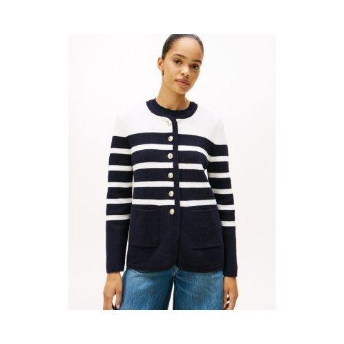 [US] TOMMY HILFIGER Oversized Gold-Button Stripe Cardigan
