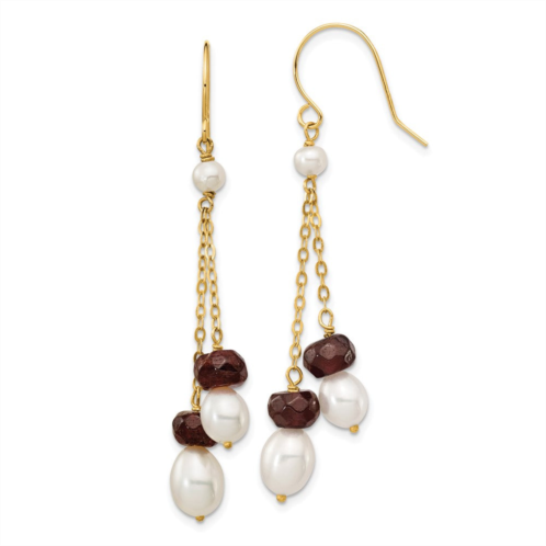 [US] Diamond2Deal 14k yellow gold 6mm freshwater cultured pearl and garnet double chain dangle earrings