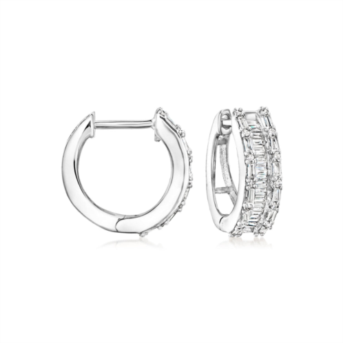 Ross-Simons is the authority on fashionable must-haves. Sparkling with three rows of .50 ct. t.w. baguette and round diamonds, our sterling silver hoop earrings offer an easy way to uplift your everyday outfits. Crafted in polished sterling silver. Length is 1/2'. Hinged post, diamond hoop earrings. Each Ross-Simons item arrives in a fine jewelry presentation box. Shop Ross-Simons jewelry risk-free as all items include a 30-day, 100% money-back guarantee.