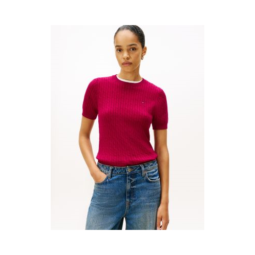 [US] TOMMY HILFIGER Short-Sleeve Cable Knit Sweater