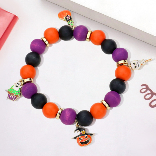 [US] FASHNZFAB halloween theme charms wood beaded stretch bracelet gold multi