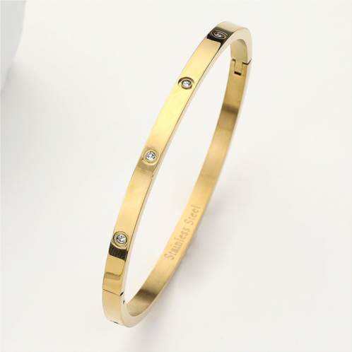 [US] FASHNZFAB stainless steel crystal embellished bangle bracelet gold