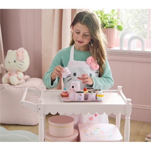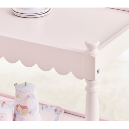 Add a sprinkle of charm to pretend play with our pretty pink tea cart, crafted from wood and set on smooth-rolling wheels. Designed with scalloped edges, two tiers for tasty treats and a handle sized just right, it’s perfect for practicing early motor skillsand hosting the cutest tea parties in the playroom.