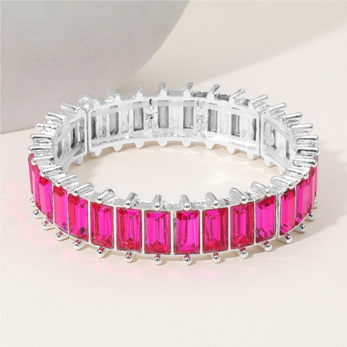 [US] FASHNZFAB baguette stone cluster beaded stretch evening bracelet
