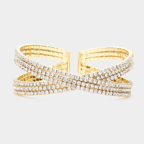 [US] FASHNZFAB rhinestone embellished crisscross cuff evening bracelet