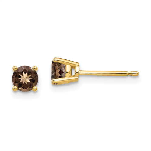 [US] Diamond2Deal 14k yellow gold 4mm round smoky quartz earrings