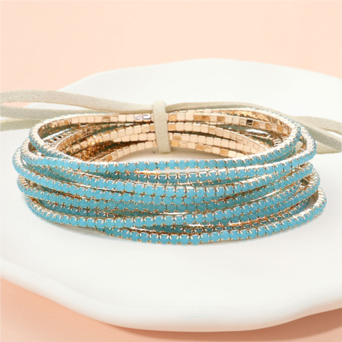 [US] FASHNZFAB 12pcs - ribbon colorful rhinestone layered stretch bracelets - blue gold