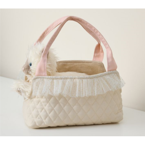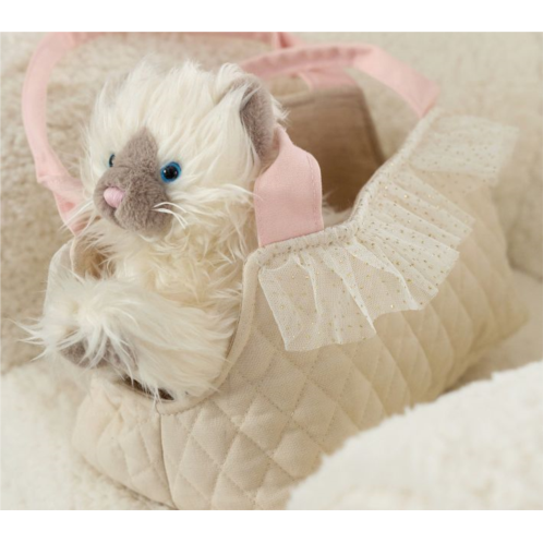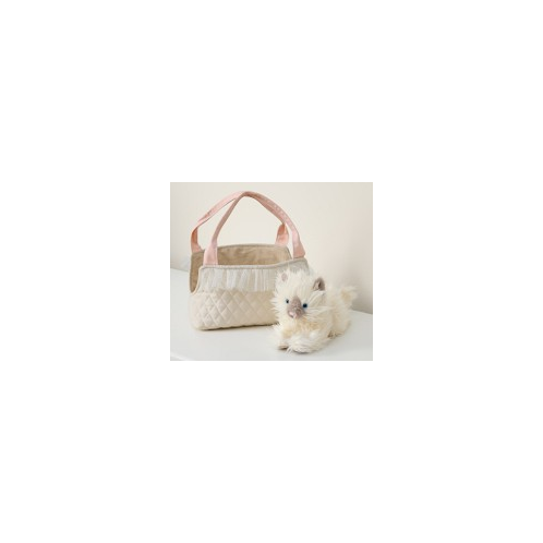 A purr-fectly cute companion for your little cat lover, this plush kitty is made from soft yarns and detailed with a sweet pink nose, fluffy hair and whiskers that wiggle with every hug. Tucked inside a quilted, cotton-blend purse and ready to travel, it even meows for extra playtime fun.