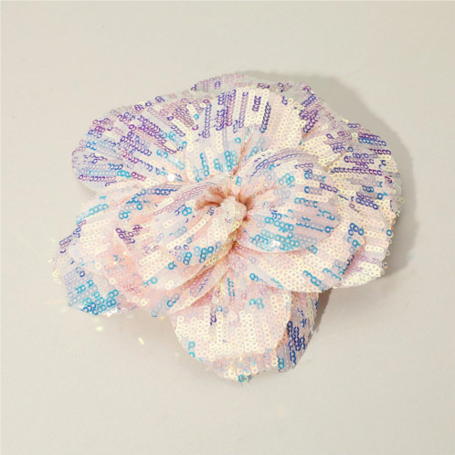 Size - 6' X 6'Dual - Pin Brooch / Hair Clip, Hair band / BraceletStatement flower hair clip with shimmering sequins and layered petals. Adds bold sparkle to party looks, dance costumes, or festive outfits. Features a secure clip for easy styling and long-lasting wear.