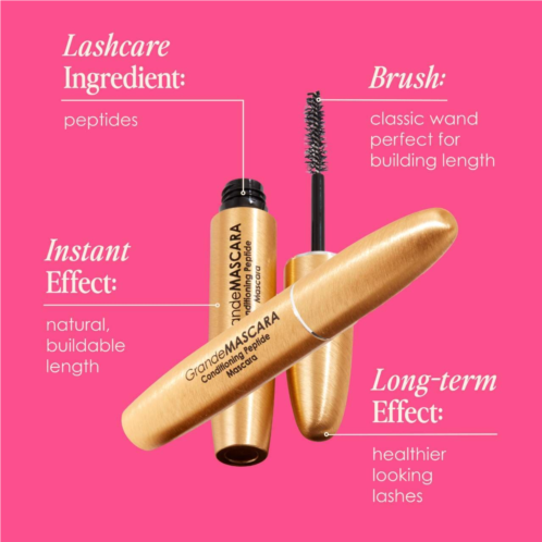 Grande Mascara lets you get the faux lash look with your own natural lashes. This exclusive, rich-black mascara not only provides extreme length and volume, but it’s infused with lash-loving blend of peptides, panthenols, and natural waxes to condition lashes while you coat and promote healthier-looking, longer lashes over time. This mascara is water based, water resistant, and easily removable to prevent lash breakage. Its buildable formula resists lumps and clumps while keeping the lashes flexible and supple. The applicator brush is made with an ideal combination of long and short fibers to reach every lash, giving extreme volume without sacrificing length.