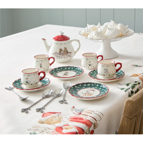 Little ones will love to host tea parties with friends and stuffed animals with this porcelain set, featuring festive holiday scenes. It includes matching spoons, saucers and cups for hours of imaginative play. Designed in collaboration with watercolor and multimedia artist, Riley Sheehey,whose original artwork is featured in each collection.