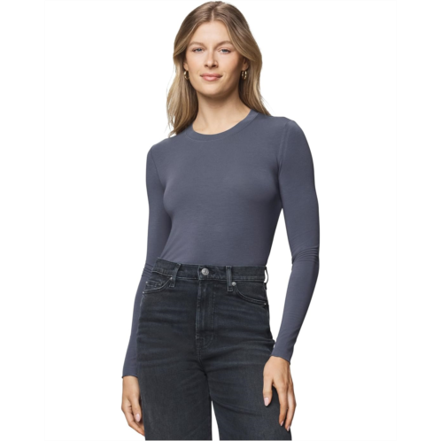 Create a comfy and basic look by wearing the Splendid Bamboo Long Sleeve Tee. The super-soft tee has a crew neckline, long sleeves, and a straight hemline. The stylish tee has a fitted silhouette and stitch details on the hem and cuffs.