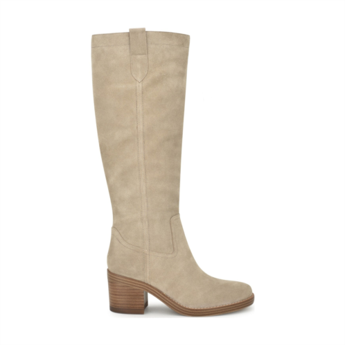 [US] Womens Hecee Block Heel Tailored Leather Boots - Tan Suede Nine West