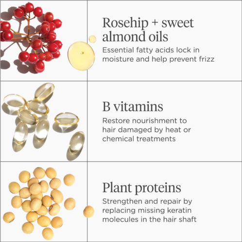 - Nourishing and hydrating ingredients restore essential moisture to dry, damaged hair