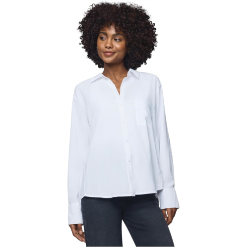 The Splendid Reese Button Down offers a polished, classic look with its crisp white fabric, relaxed fit, chest pocket, and versatile long sleeves for timeless styling. The perfect pairing to your flawless style!