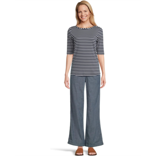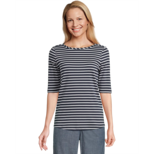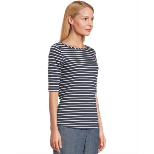 [US] L.L.Bean Womens LLBean Pima Cotton Tee Boatneck Elbow Sleeve Stripe