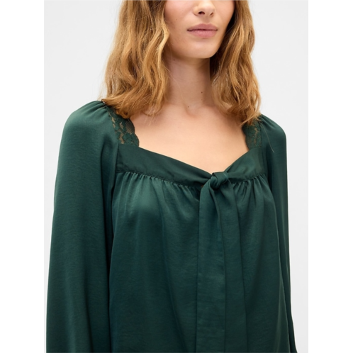 - Tie detail at square neckline.