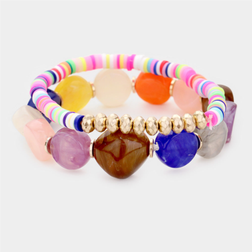 [US] FASHNZFAB 2pcs - colorful stone disc bead metal stretch bracelets gold multi