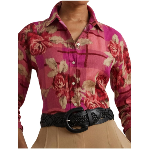 Add a pop of color to your ensemble wearing the LAUREN Ralph Lauren Petite Relaxed Fit Floral Linen Shirt. The painterly floral motif on this shirt is a playful and vibrant addition to your wardrobe. With a pointed collar, long roll-tab sleeves with buttoned barrel cuffs, and a back yoke for added detail, this shirt is both versatile and stylish. The shirttail hem adds a touch of femininity, making this shirt perfect for any occasion.