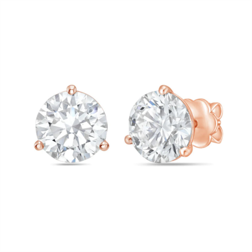 [US] Diana M. 14kt rose gold round lab grown stud earrings weighing 1.50 cts tw in a three prong setting