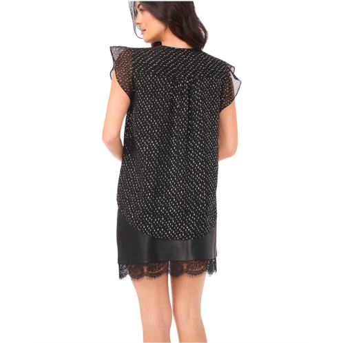 Featuring an allover print, the Vince Camuto V Neck Ruffle Sleeve Blouse makes a stylish addition to your wardrobe. It is designed with short ruffle sleeves, a V-neckline, and a shirttail hem. Made from polyester fabric, this printed sleeveless blouse is perfect to pair with casual trousers or denim pants.