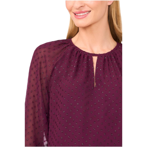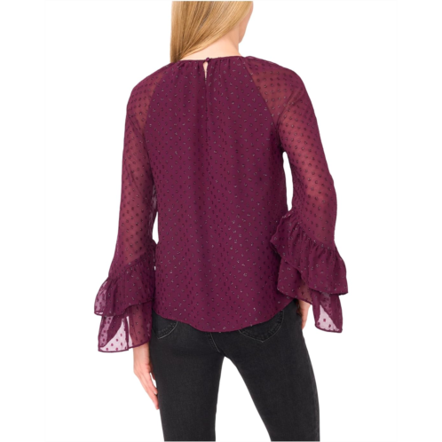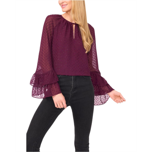 [US] CeCe Tiered Sleeve Front Keyhole Blouse