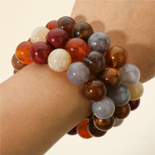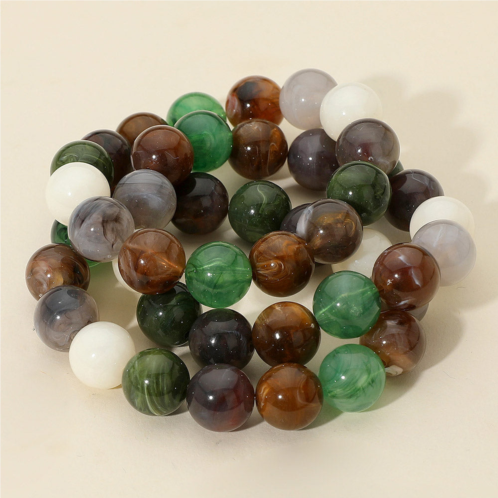 [US] FASHNZFAB 3pcs - round resin ball beaded stretch multi layered bracelets