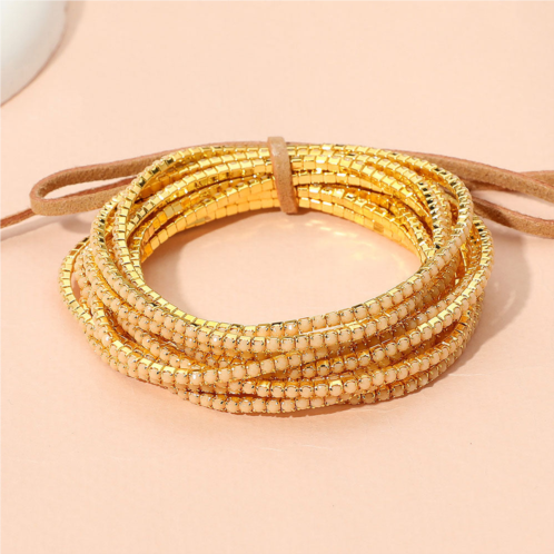 [US] FASHNZFAB 12pcs - ribbon colorful rhinestone layered stretch bracelets - gold