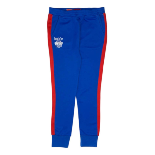 Premium Tricot Fabric. Classic Track Bottom Fit. Contrast Color Stripe Down Legs. Slip Front Pockets. Ribbing at Waist and Cuffs. Collaboration Crest Embroidery Artwork at Thigh.