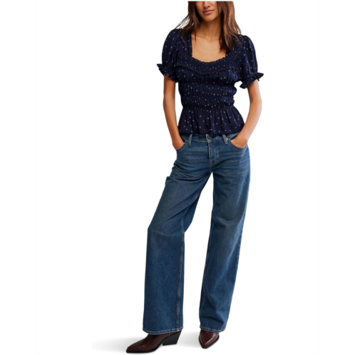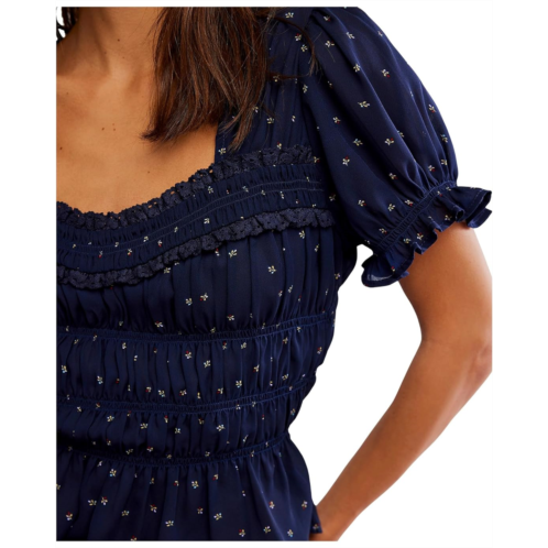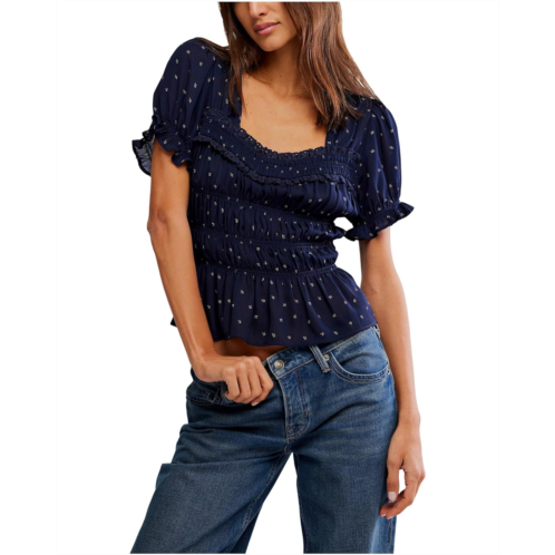 Exude pretty vibes wherever you go wearing the Free People Adore You Blouse. The pull-on style blouse features a square neckline with delicate ruffle detailing, allover micro-print pattern, short puff sleeves with elasticized ruffle cuffs, and smocked bodice for a fitted shape, and peplumkorea hem