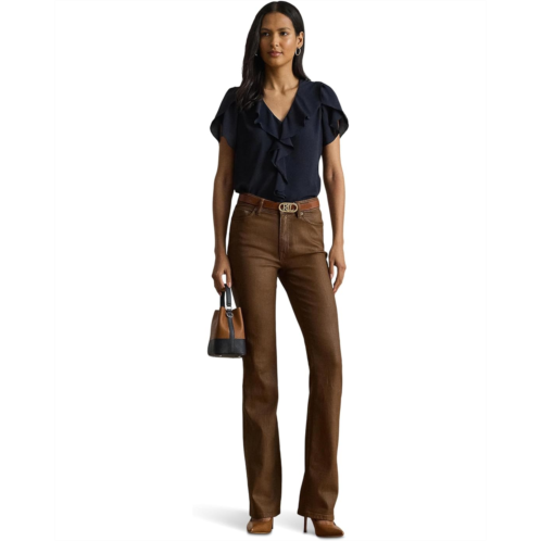 Look stunning in the feminine charm of this chic LAUREN Ralph Lauren Ruffle-Trim Georgette Blouse with whimsical flutter sleeves, ruffle trim, and self-ties at the neckline.