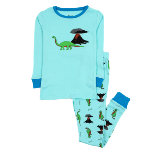 [US] Leveret kids two piece cotton pajamas dinosaur blue