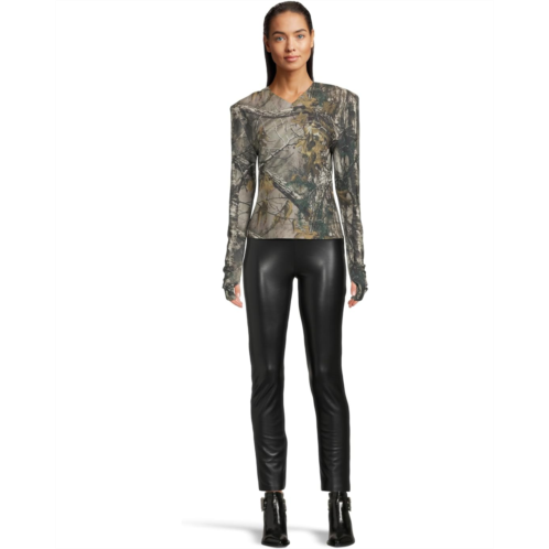 [US] Norma Kamali Long Sleeve Shoulder Pad V-Neck Top