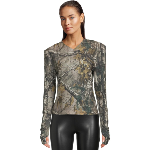 The Norma Kamali Long Sleeve Shoulder Pad V-Neck Top offers a contemporary twist on classic elegance. With its slim fit, V-neckline, long sleeves, and padded shoulders, this top effortlessly combines style and structure for a sophisticated silhouette. Made from a polyester blend, this printed top is styled with an allover print.