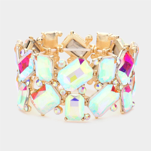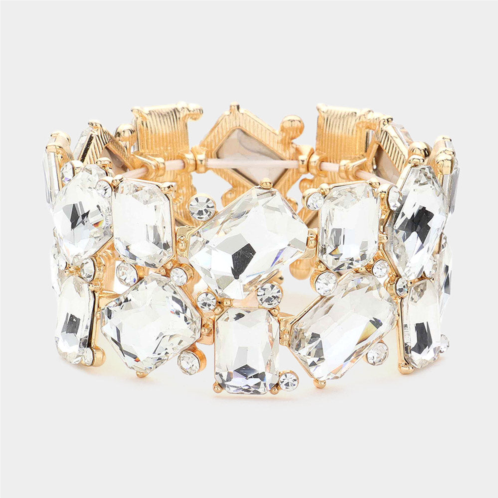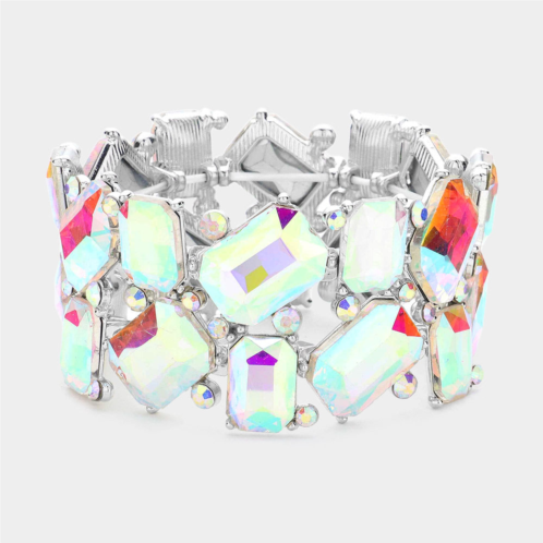 [US] FASHNZFAB rectangle round glass stone cluster stretch evening bracelet