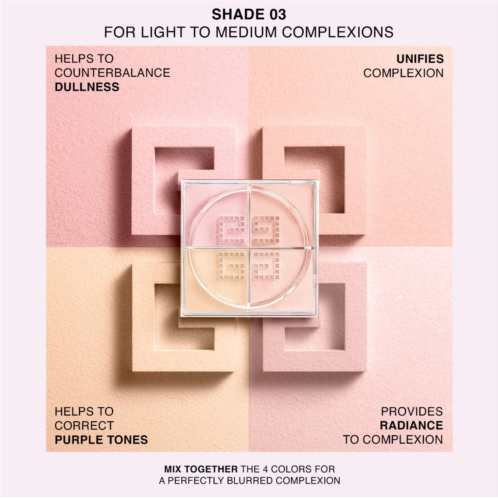 What Else You Need to Know: The 4-color loose powder features Prismatic Light Technology to set makeup & illuminate skin. The long-wearing, non-comedogenic, dermatologically tested, waterproof & weightless formula has two colors for correction & two for radiance.