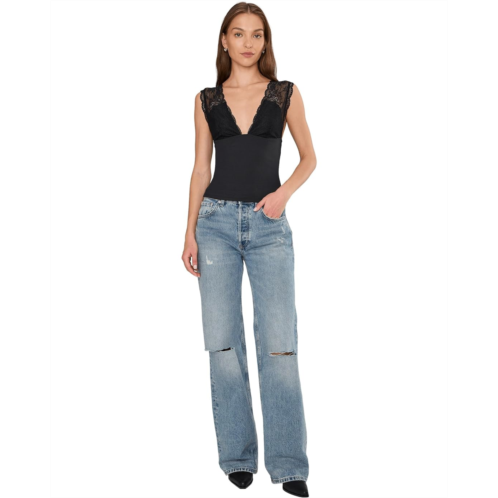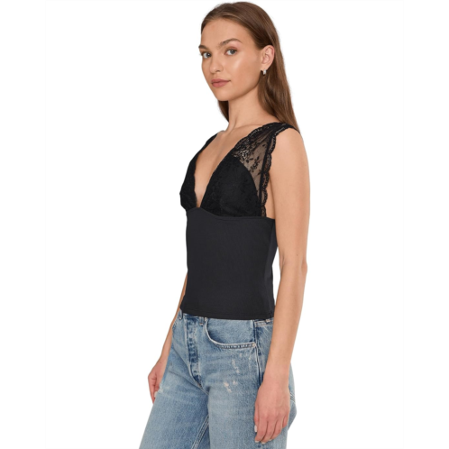 Classic and femme, this sweet cami features a lace-adorned plunge neckline and ribbed bodice in a slim, cropped silhouette. Featuring a low back with a stretch fit and a sleeveless design.