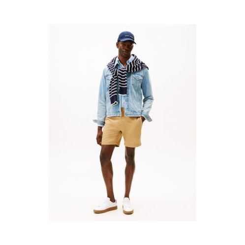 Tommy Hilfiger men's short. These shorts are made from a breathable cotton-linen blend that keeps you cool and comfortable. This summer-friendly pair features a flat-front design with a coin pocket in a trim silhouette.