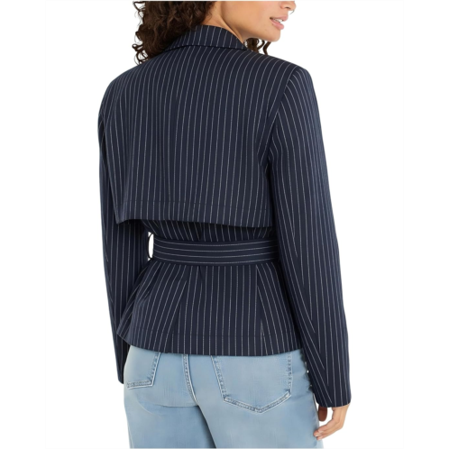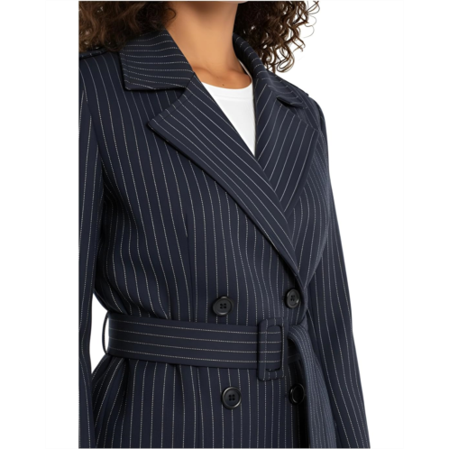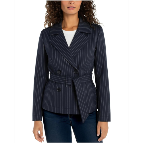 - A statement in stripe: The Liverpool Los Angeles Cropped Pinstripe Trench Jacket with Belt delivers timeless sophistication fueled by a modern attitude. Designed in a unique pinstripe jacquard knit fabric, this cropped silhouette redefines everyday chic with its refined edge. The notch lapel collar and button front closure lend a polished finish, while the self-tie belt cinches the waist for a flattering, structured fit. With long sleeves and a contemporary cropped length, this piece layers effortlessly over everything from tailored trousers to casual denim.