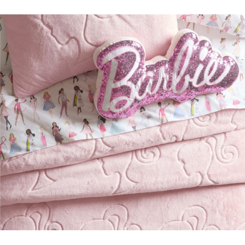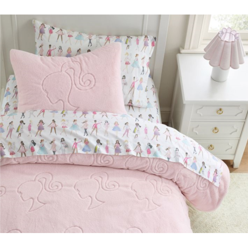 Sweet dreams are in store for your little Barbie fan! The soft, faux-fur comforter boasts an allover silhouette of the iconic doll in a precious pink hue and pairs with organic sheets to supply them with breathable, long-lasting comfort.