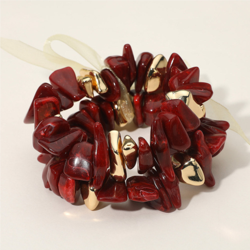 Size - 1.5' HStretchableElevate your style with this chunky stone bead stretch bracelet featuring polished accents and a delicate ribbon detail. Its bold yet elegant design makes it a versatile accessory, perfect for adding texture and personality to both everyday looks and special occasions.