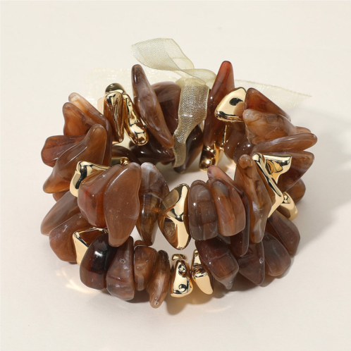[US] FASHNZFAB 2pcs - chunky marbled resin metal beaded stretch multi layered bracelets