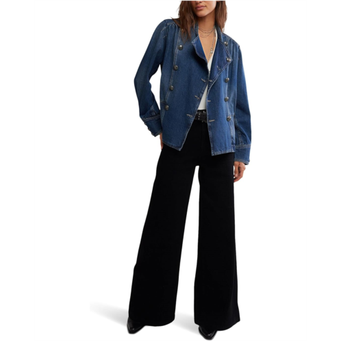 - Keep your style game on point by layering the Free People Imogene Denim Officer Jacket. The tailored double-breasted jacket features a washed denim fabrication, notch neck, a button-front closure, long sleeves with three buttoned cuffs, and a straight hem.