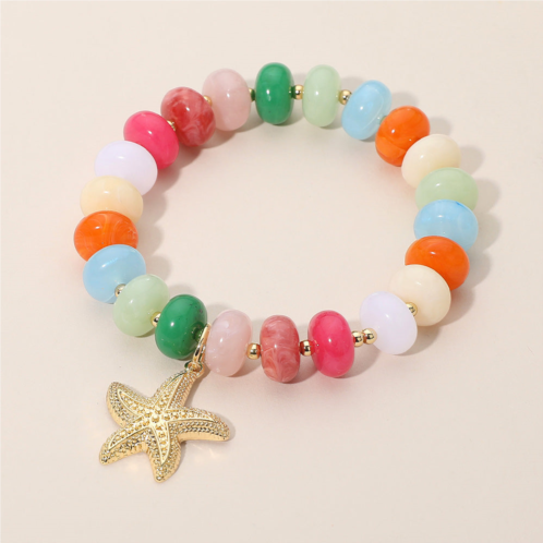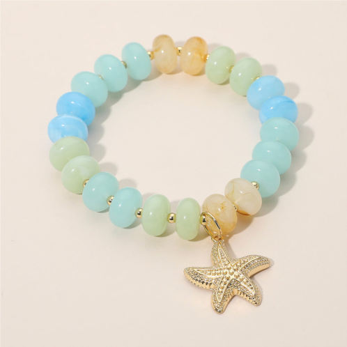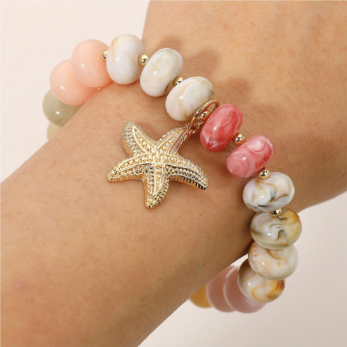 [US] FASHNZFAB textured metal starfish charm accent resin pebble beaded stretch bracelet