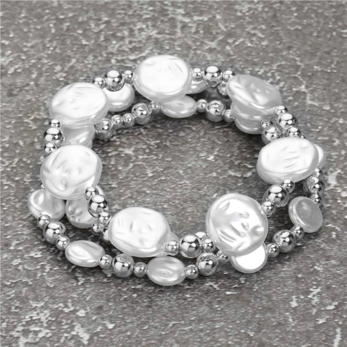 [US] FASHNZFAB 3pcs - pearl metal ball beaded stretch multi layered bracelets