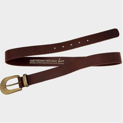 The perfect belt can really tie an outfit together and this one is no exception. Classic in its design and built to last, this belt can complement any outfit.Adrie has entered the party & she is making a statement! This premium leather belt for jeans and dresses is perfect for a casual occasion turned into a night out. The large, rounded horseshoe buckle is just the right size to match this otherwise inconspicuous belt.PRODUCT DETAILSWidth - 1'Material - Vegetable Tanned Full Grain Leather BeltBuckle - Nickel Free. Sourced from ItalyBuckle color - Antique GoldType - Handmade Leather Belt from The NetherlandsAt Amsterdam Heritage, we take pride in leather craftsmanship and handmade products. Our belts are crafted from the finest quality leather by skilled artisans in The Netherlands. We are committed to sustainability, using vegetable-tanned leather and nickel-free buckles sourced directly from Italy. Our products are designed to improve with age and last a lifetime.